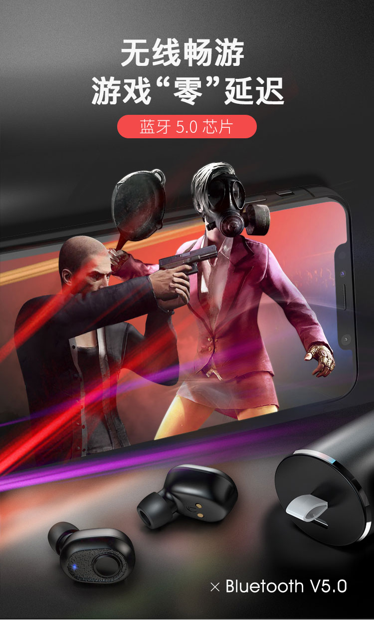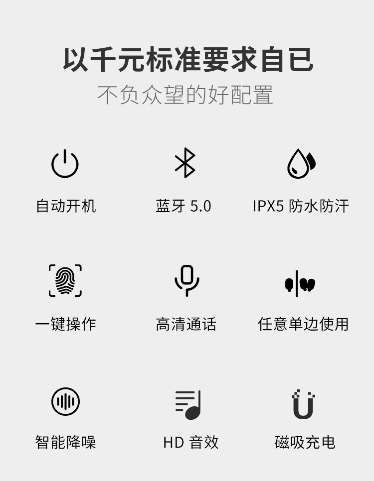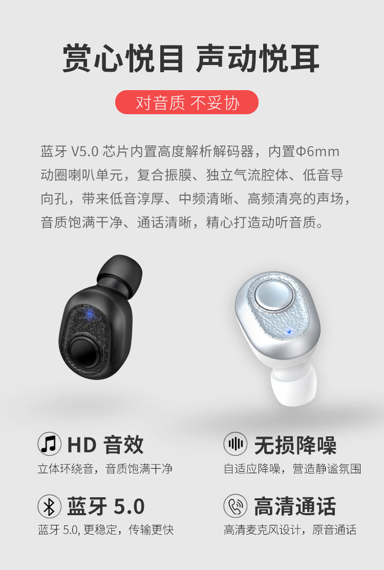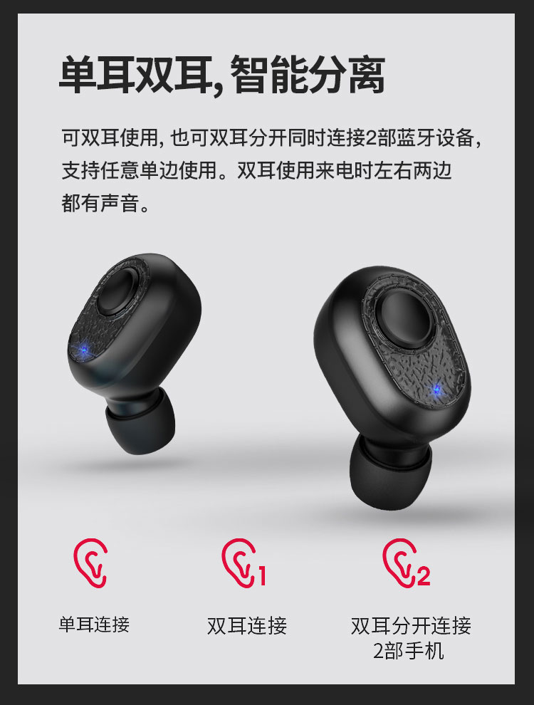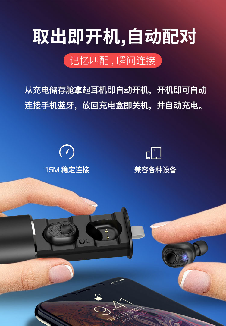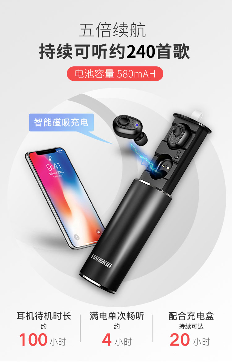 藍牙5.0,磁吸快充整理盒工作設想 取出即連,自覺匹配 580 mAh 大余量電池組,撐持5.5H輕音樂,互相充電器盒續展多達20鐘頭 HIFI立體音質,IPX5級防水性防汗